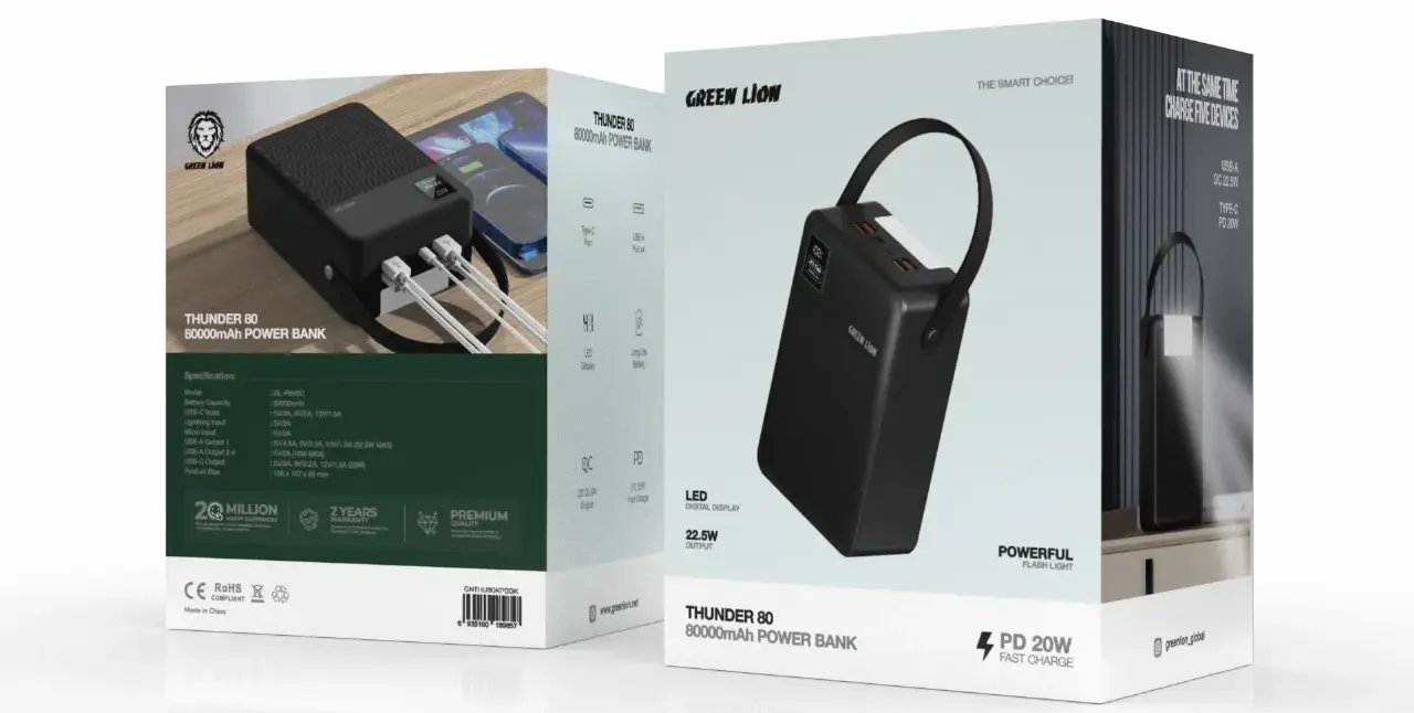 پاوربانک Green Lion Thunder 80 با ظرفیت 80,000 میلیآمپرساعت، گزینهای مناسب برای افرادی است که نیاز به شارژ مداوم و همزمان چند دستگاه دارند. این پاوربانک با قابلیت شارژ سریع از طریق فناوریهای Power Delivery و Quick Charge، به شما این امکان را میدهد که گوشی، تبلت، اسپیکر، هدفون و دستگاههای دیگر را به سرعت و بدون مشکل شارژ کنید. طراحی مقاوم آن باعث میشود این پاوربانک برای سفرهای طولانی، کمپینگ، یا مواقعی که دسترسی به پریز برق ندارید، بسیار مناسب باشد.
