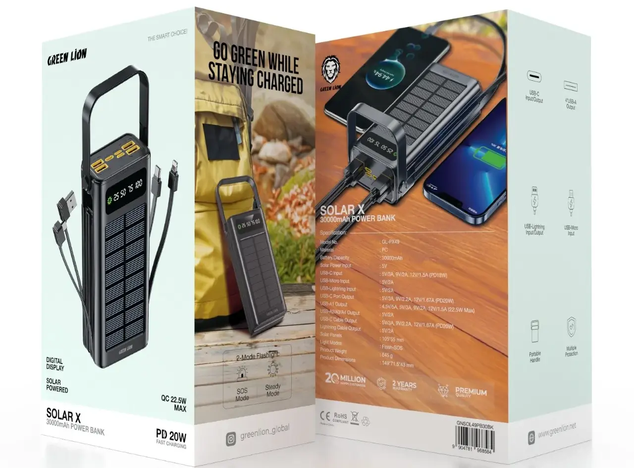 پاوربانک خورشیدی گرین لاین 30000mAh یک منبع انرژی قابل حمل و قدرتمند است که برای کسانی طراحی شده که اغلب در سفر، طبیعت یا جاهایی بدون دسترسی به برق هستند. این پاوربانک با ظرفیت بالا قادر است گوشی، تبلت یا گجتهای مختلف را چندین بار شارژ کند و با داشتن پنل خورشیدی، گزینهای مناسب برای کمپ، کوهنوردی یا اوقات اضطراری است. از طرفی پورتها و کابلهای متنوع آن انعطاف بالایی برای شارژ انواع دستگاهها فراهم میکند.