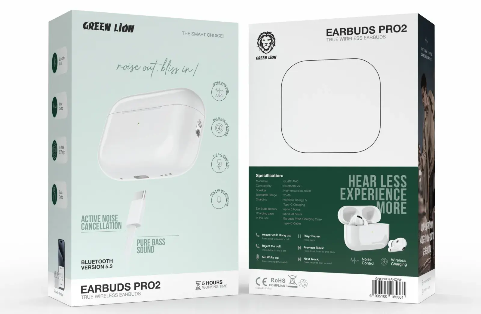 معرفی ایرپادز پرو 2 اکتیو گرین لاین Green Lion Earbuds Pro2 Active ANC