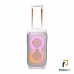 طراحی چمدانی با دسته تلسکوپی و چرخهای مقاوم، حمل و نقل این اسپیکر را آسان کرده است. علاوه بر این، نورپردازی RGB قابل تنظیم به همراه قابلیت اتصال چند اسپیکر از طریق Auracast، تجربهای فوقالعاده برای مهمانیها و دورهمیهای دوستانه ایجاد میکند.